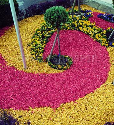 Декоративная щепа регулярно используется в ландшафтном дизайне для декорирования и мульчирования садов и участков. Сама щепа окрашена красителями на натуральной основе, которые не смываются водой и устойчивы к выгоранию на солнце. Сам цвет получается ярким и насыщенным. Средний срок службы декоративной щепы составлет приблизительно 2-3 года. После укладки на землю, со временем нижние слои щепы начинают понемногу перегнивать, улучшая состав почвы, но при этом свои декоративные свойства она сохраняет на протяжении всего срока службы. Сама же основа - это щепки хвойных пород деревьев фракции от 2 до 4 сантиметров. Чтобы добиться максимального мульчирующего эффекта и 100% отсутствия сорняков, рекомендуем вам укладывать коричневую декоративную щепу на подложку из геотекстиля или листвиничного гумуса. Оптимальная толщина укладки составляет 3-4 сантиметра. Купить цветную коричневую щепу можно в мешках объемом 60 литров, цена зависит от количества - чем больше объем, тем ниже цена. 60 литрового мешка при указанной толщине засыпки хватает на 1 квадратный метр территории.